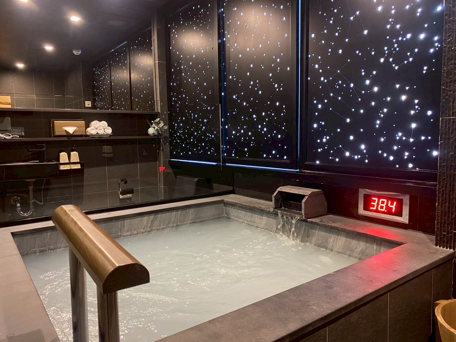 บ่อออนเซ็นร้อน Onsen 1 Size 1.40 x 1.60 x 0.50 m. 40-42 °C บ่อออนเซ็นร้อน Onsen 2 Size 1.40 x 3.50 x 0.50 m. 40-42 °C บ่อออนเซ็นร้อน Onsen 3 Size 1.60 x 1.60 x 0.50 m. 40-42 °C บ่อออนเซ็นร้อน Onsen 4 Size 1.60 x 2.80 x 0.50 m. 40-42 °C บ่อออนเซ็นร้อน Onsen 5 Size 1.40 x 3.20 x 0.50 m. 40-42 °C บ่อสปาเย็น Onsen 3 Cold Spa Size 1.60 x 1.60 x 0.50 m. 17-19 °C Sauna Room Size : 1.90 x 1.60 x 2.30 m. Steam Room Size : 1.20 x 1.50 x 2.30 m. Sauna Room Size : 1.70 x 1.60 x 2.30 m. Steam Room Size : 1.60 x 1.90 x 2.30 m.